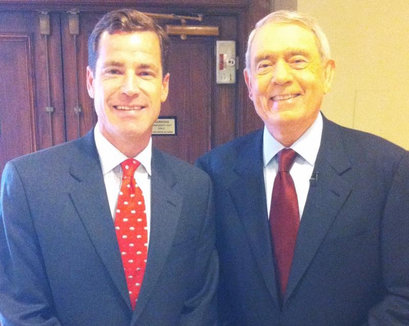 Tom Woods meets with legendary newsman Dan Rather prior to their visit to Nigeria